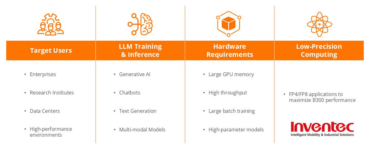 • 10U air-cooled AI server featuring NVIDIA HGX™ B300 GPUs.